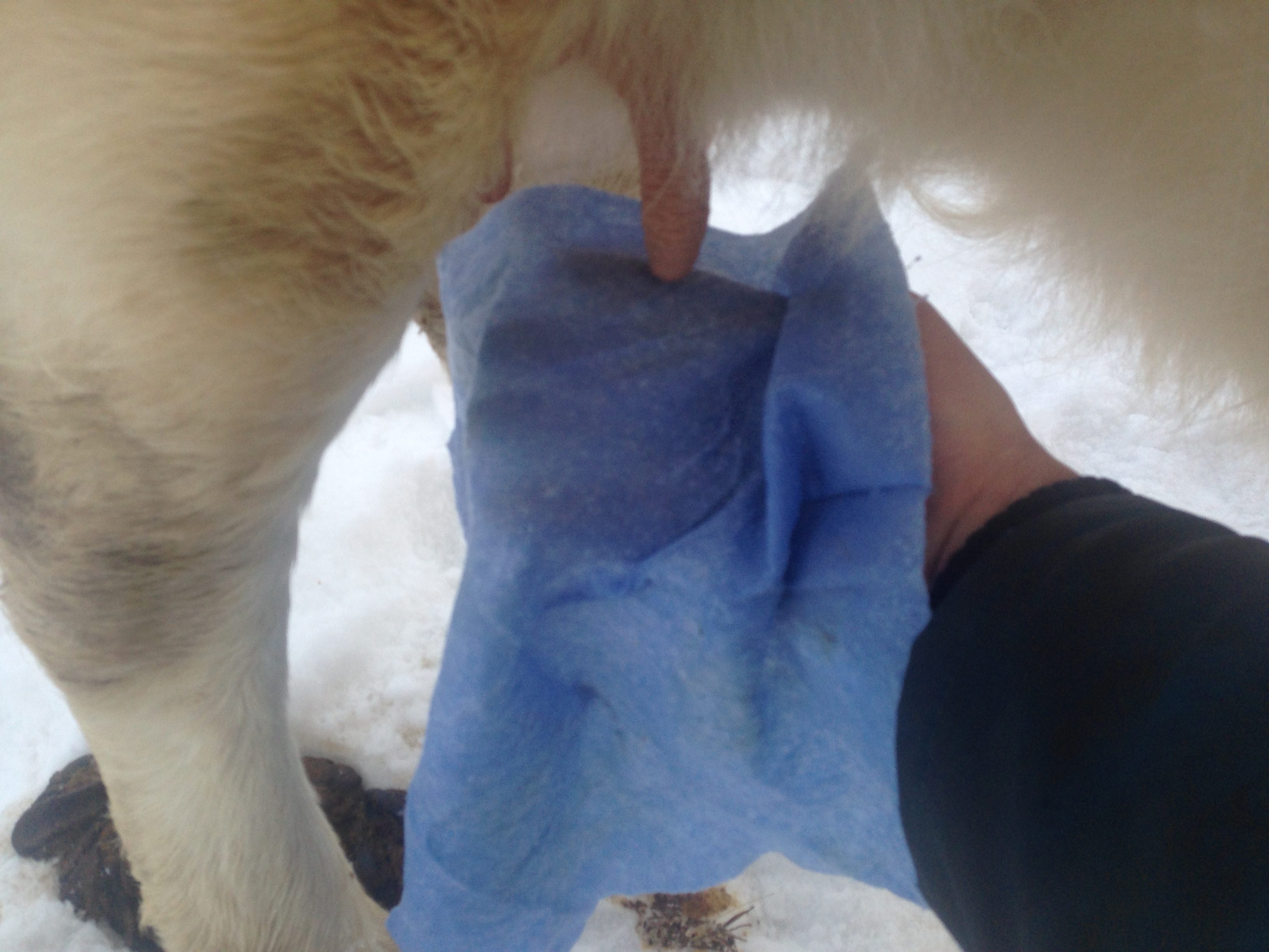 - Pestään utareet lämpimällä ja kosteala liinalla.