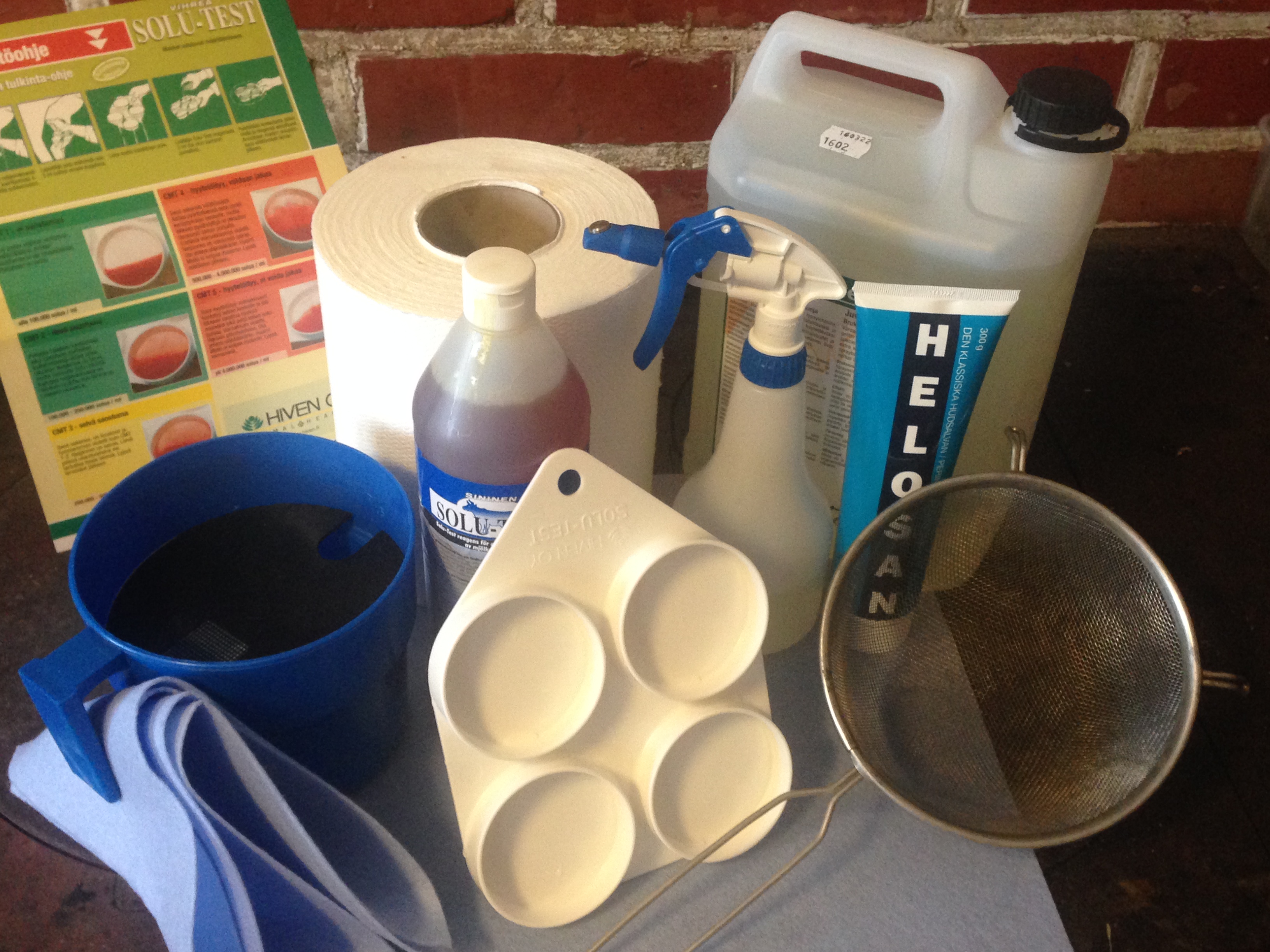 7. Astioiden pesu: Ensin huuhdellaan maitoiset astia alle 30 asteisella vedellä. Maito ei pala silloin astiaan kiinni. Sen jälkeen kuumalla saippuavedellä tässä voi käyttää normaalia tiskiainetta. Huuhdellaan kuumalla tai kylmällä vedellä. Jätetään kuivumaan seuraavaa lypsyä varten. Mitä nopeammin pesee sitä helpompi pesu on.