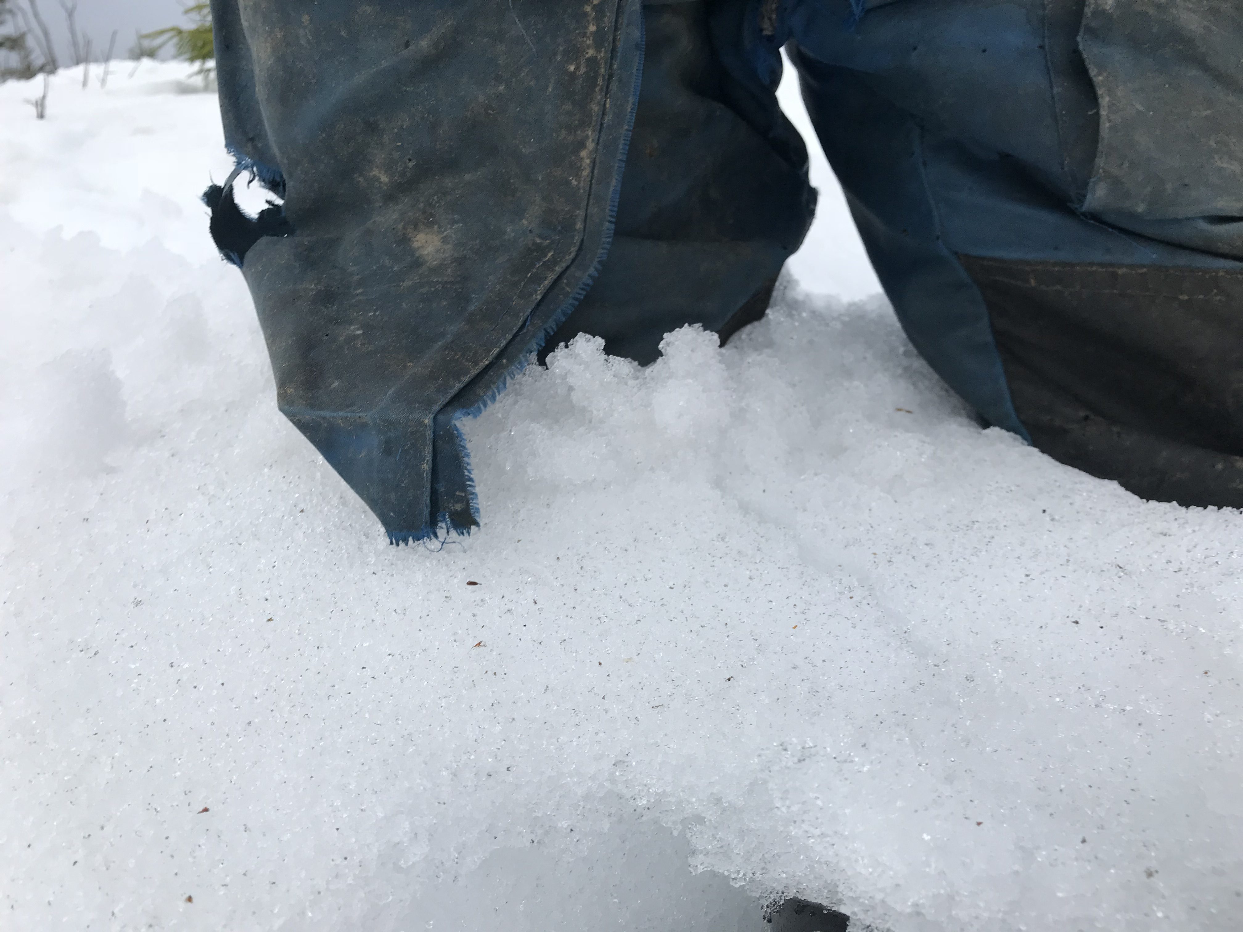 Sitä todella tarvitaan, kun pukee pilkkihaalarit päälle ja lapion heittää olalle. Siellä on lunta mutta kuinka paljon. Lahkeita saappaiden sisäpuolelle ja ulkopuolelle, jotta saapas ei haukkaa lunta kenkään.