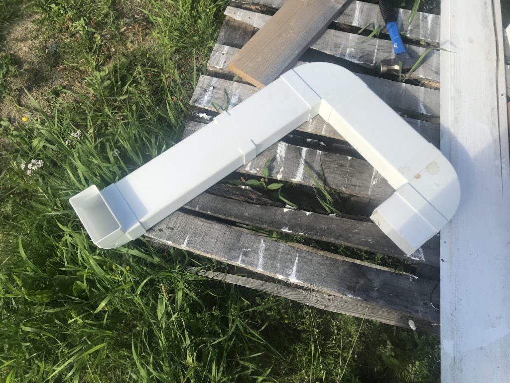 Meillä on ollut tuollaisia putkia varastossa. Tarkoitettu ilmanvaihto järjestelmiin. Kannattaa sovitella, väännellä ja käännellä. Ajatus on, että vasemman reunan aukosta vesi tulee sisään ja toisesta päästä ulos.