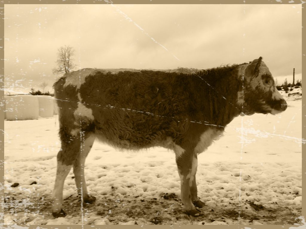Minussa yhdistyy monta rotua vaikka näytän Isk:lta. Olen tämän tilan ensimmäinen oma vasikka ikää minulla on puolisen vuotta. Sain olla pitkään emän alla, vaikka se kävi lypsyllä aamuin illoin. Isäntä kuitenkin päätti minut vierottaa toiseen ryhmään, koska isäni on astumassa lypsyssä olevia ja lehmän ikään päässeitä. Aloin tulemaan jo siihen ikään, että vahinko olisi mahdollista. Olen vielä vähän epäileväinen noita ihmisiä kohtaan. Vieroitus aikaan huutelin emän perään jonkin  aikaa mutta sain mukaani leikkikaverini Tuhdin. Se helpotti minua vierotuksen aikoihin, koska sain siitä turvaa. Minusta tulee sitten isona lypsylehmä niin kuin äidistäni. Minä opettelen nyt puolitoista vuotta ymmärtämään ihmisiä ennen kuin minun tarvitsee lypsylle mennä.